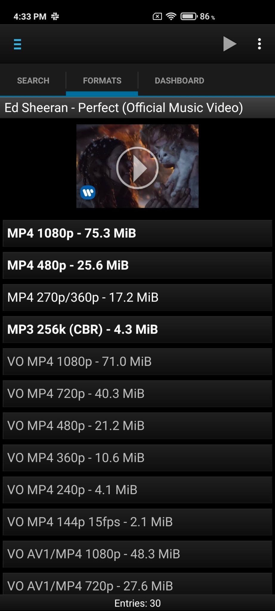 Video List Filters By Format, Quality Etc Via (Left) Sliding Menu;